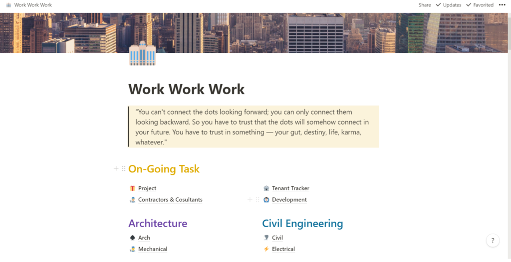 Tampilan halaman notion saya perihal pekerjaan