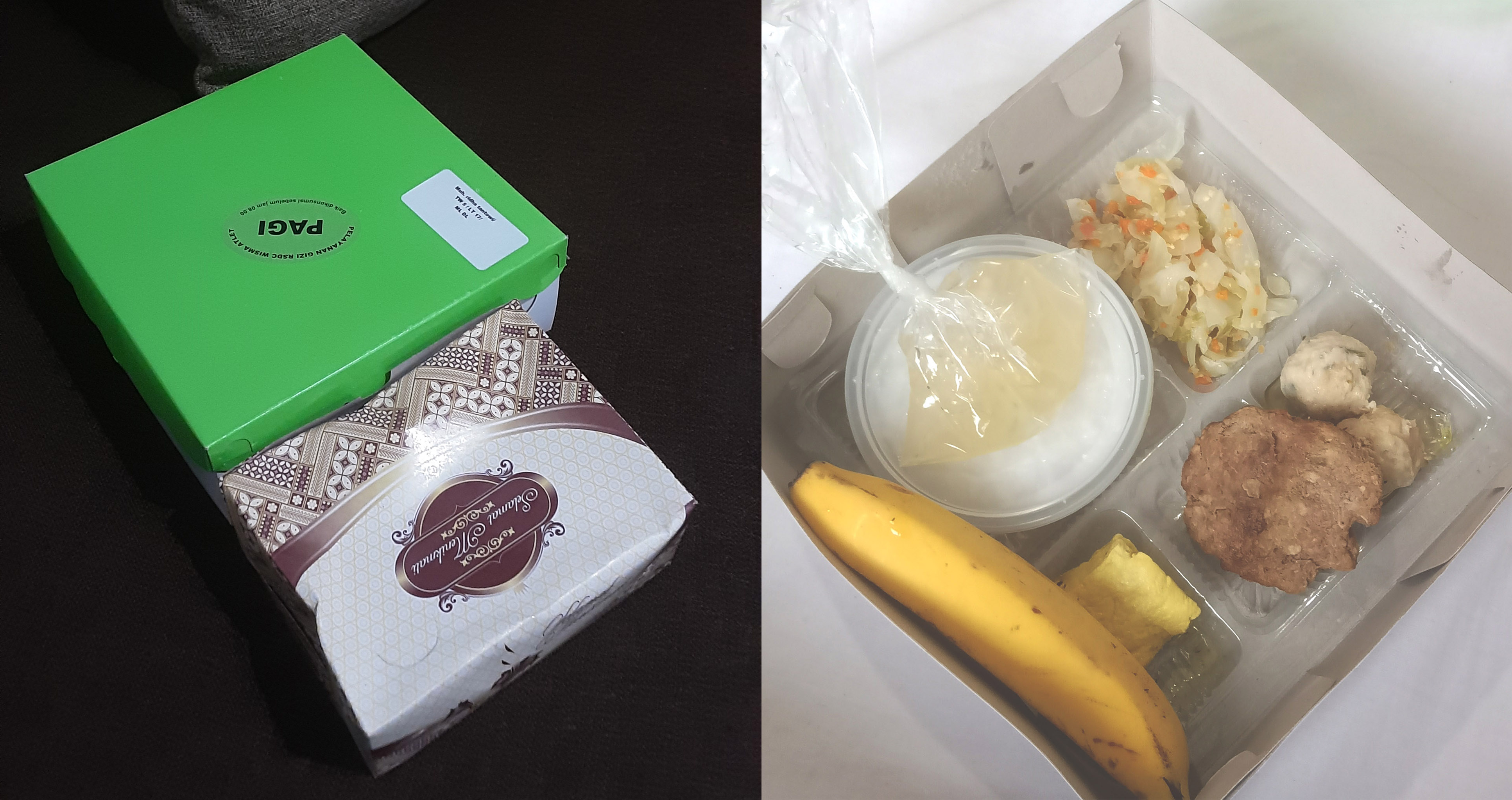 Di hari pertama dan kedua, saya hanya mampu menghabiskan 2-3 sendok makanan saja. Entah faktor napsu makan yang turun, atau karena makanannya. Karena tidak jarang, saya mengalami mual yang sangat tidak mengenakan. Hingga di hari ketiga, saya konsul dengan ahli gizi di sini yang berujung diubahkan menu makan saya menjadi paket diet.