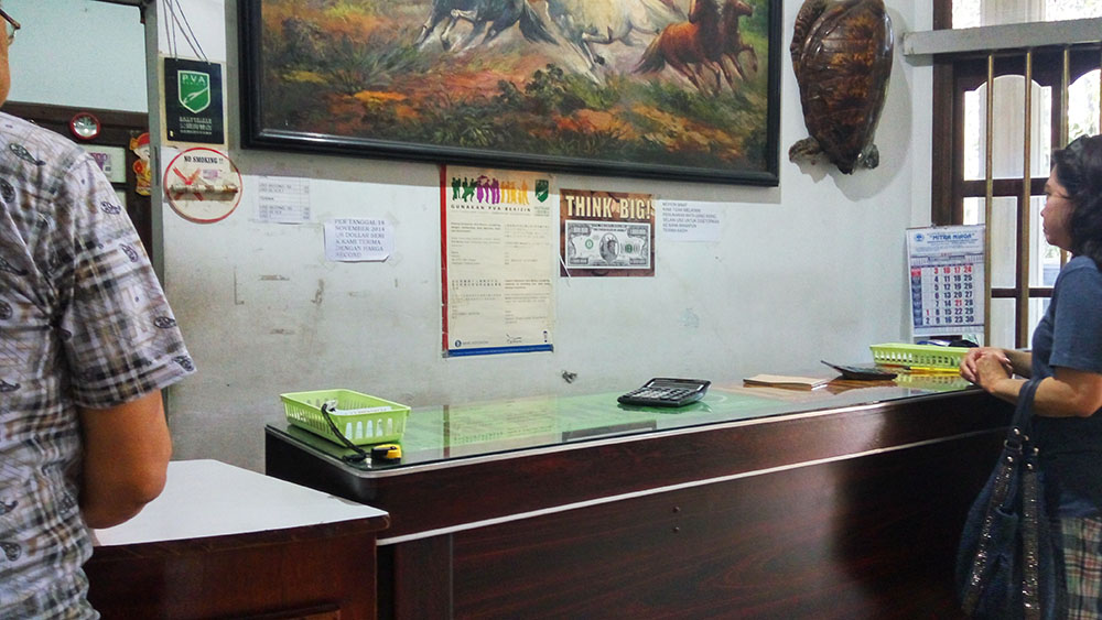 Sesampainya di Lanina Valas, gue bingung, ini beneran money changer apa gimana. Gue berani bertaruh kalian juga bakal bingung, haha, soalnya ini kantornya kayak rumah plus pagarnya yang tinggi. Tulisan “Money Changer” atau brand “Lanina” nya pun gak ada sama sekali di depan. Jadi jangan sampe kelewat, nah, berbekal nekat, gue masuk aja ke dalam yang langsung disambut sama penjaganya yang ramah.