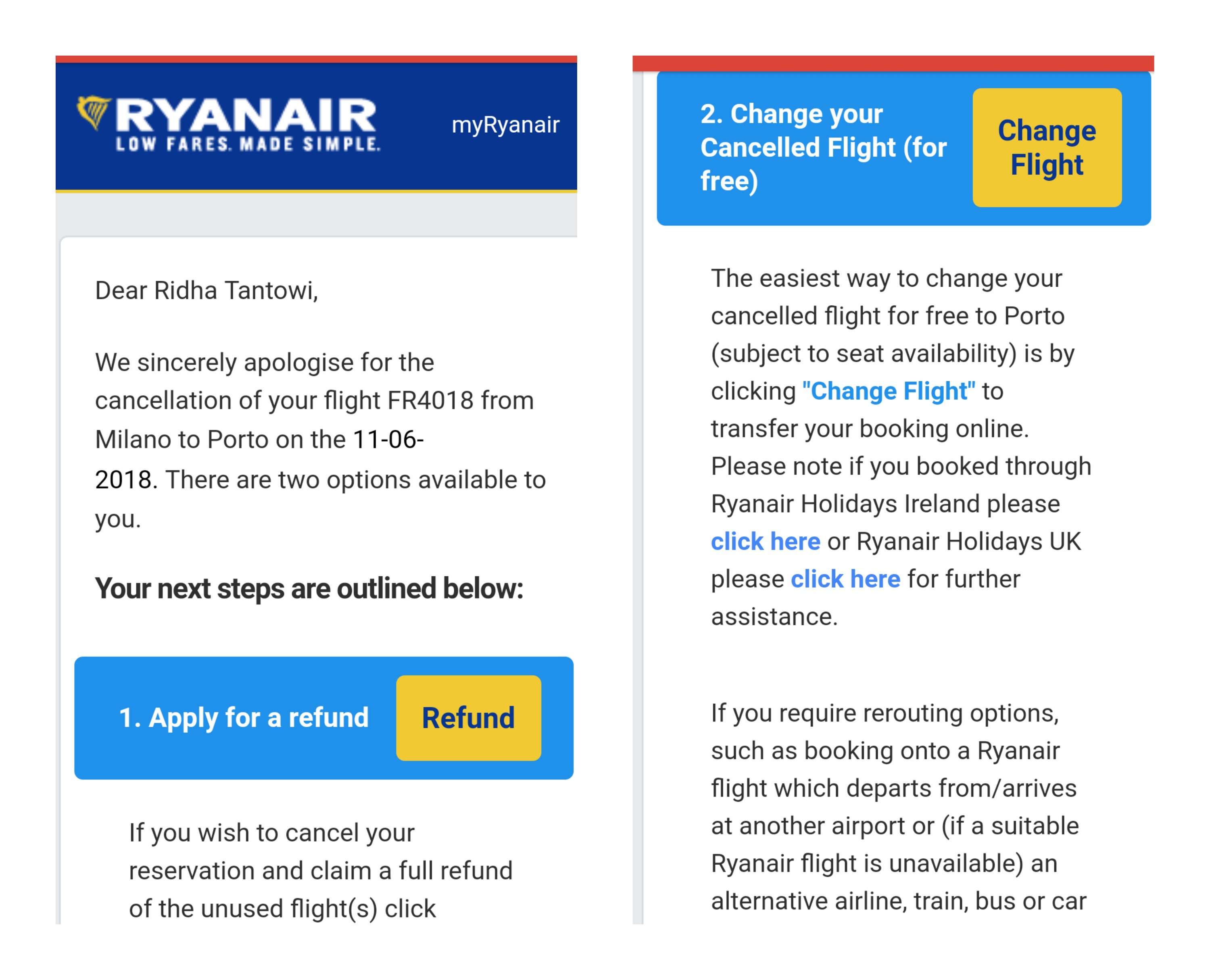 Pernah suatu ketika saya hendak pulang ke Porto dari Milan dengan menggunakan Ryanair. Penerbangan saat itu terjadwal sekitar pukul empat sore. Namun, tiba-tiba saya dikagetkan dengan email dari Ryanair kalau penerbangan dibatalkan.
