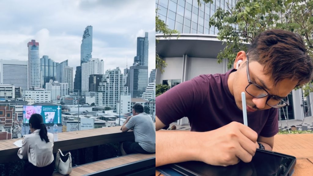 A glimpse of me, working on my motivation letter, in a coffeeshop in Bangkok