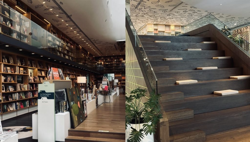 Menurut saya, ini adalah mall terkeren yang ada di Bangkok. Di lantai enam mall ini terdapat satu toko buku besar bernama Open House yang sangat aethetic. Tidak hanya itu, ada banyak sekali coffee shop dan co-working spaces yang ada, mulai dari yang gratisan sampai yang berbayar. Saya menyempatkan untuk mencoba keduanya. Uniknya, untuk co-working space berbayar ini mereka menawarkan dua opsi yakni membeli makanan dengan minimum spend tertentu, atau membeli paket study space yang berlaku tiga jam. Karena memang tujuan saya adalah untuk makan dan juga belajar, jadilah saya membeli makan dan minum yang bonusnya adalah tempat belajar yang cantik dengan wifi yang cukup ngebut. Harga makanan di sini relatif sama dengan kafe-kafe yang ada di mall Jakarta menurut saya. Untuk satu cake dan minuman dingin, saya membayar sekitar 180THB atau sekitar 80k rupiah.