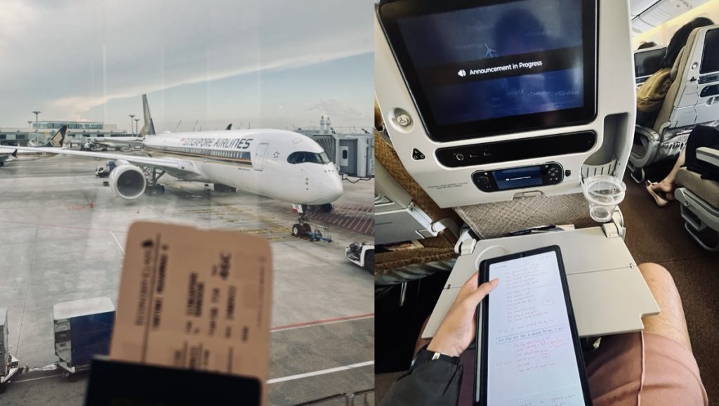 Penerbangan pagi menggunakan Singapore Airlines dengan transit di Singapore lalu lanjut ke tujuan akhir yakni Bandara Suvarnabhumi Bangkok. Di pesawat pun saya masih sempat-sempatnya brainstorming motivation letter untuk aplikasi beasiswa.