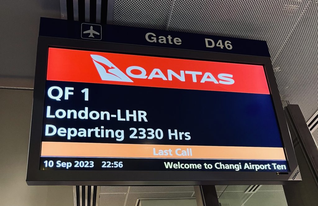 Kita berdua sama-sama panik. Selepas mendarat, tanpa pikir panjang kita lari sambil membawa koper kabin masing-masing di tengah ramainya bandara changi malam itu. Selain waktu terbatas, tantangan berpindah terminal inilah yang jadi isu. Benar saja, setelah berlarian dengan backpack di punggung, koper di tangan kiri, dan jaket di tangan kanan, kami akhirya tiba di gate 30 menit sebelum jam keberangkatan pesawat dengan bonus keringat yang membasahi sekujur tubuh masing-masing.